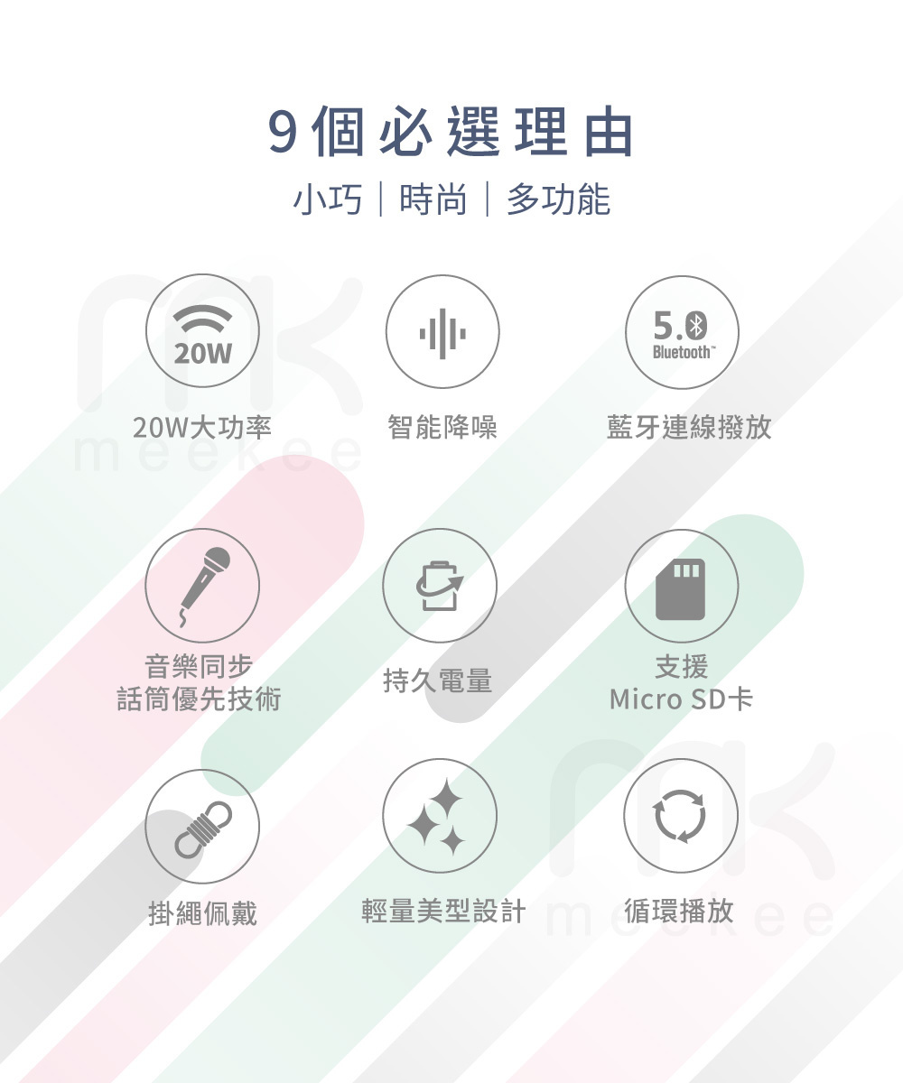 搭載20W大聲量,大空間講話不吃力,自動連接麥克風多台同時使用也不干擾📢