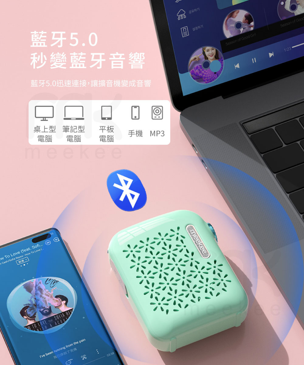 支援藍牙+記憶卡播放,音檔操作超簡單!還有長效續航,整天教學不怕沒電💪📚