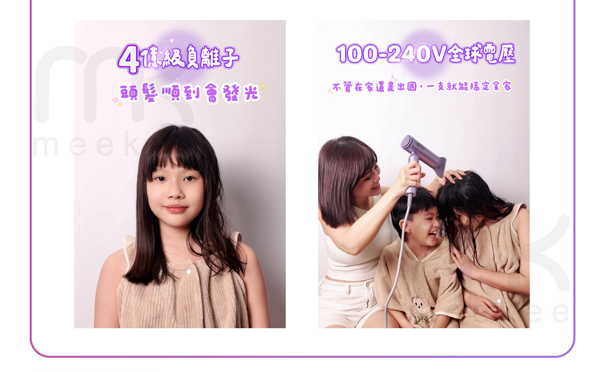 負離子: 4億級高濃度負離子,深層養護、抗靜電、鎖水光澤