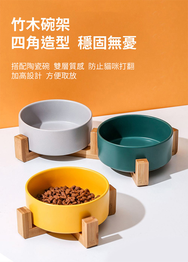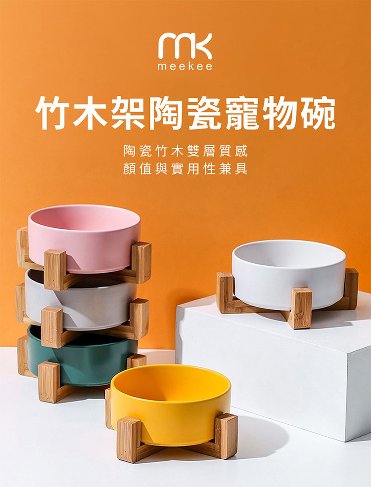 meekee 竹木架陶瓷寵物碗-小 (WPT-01)