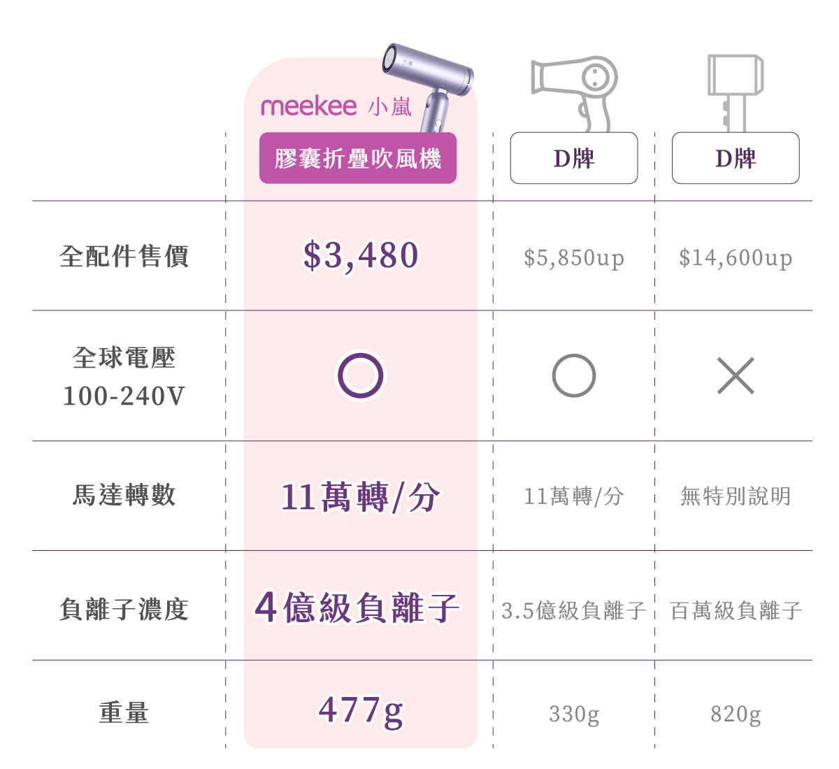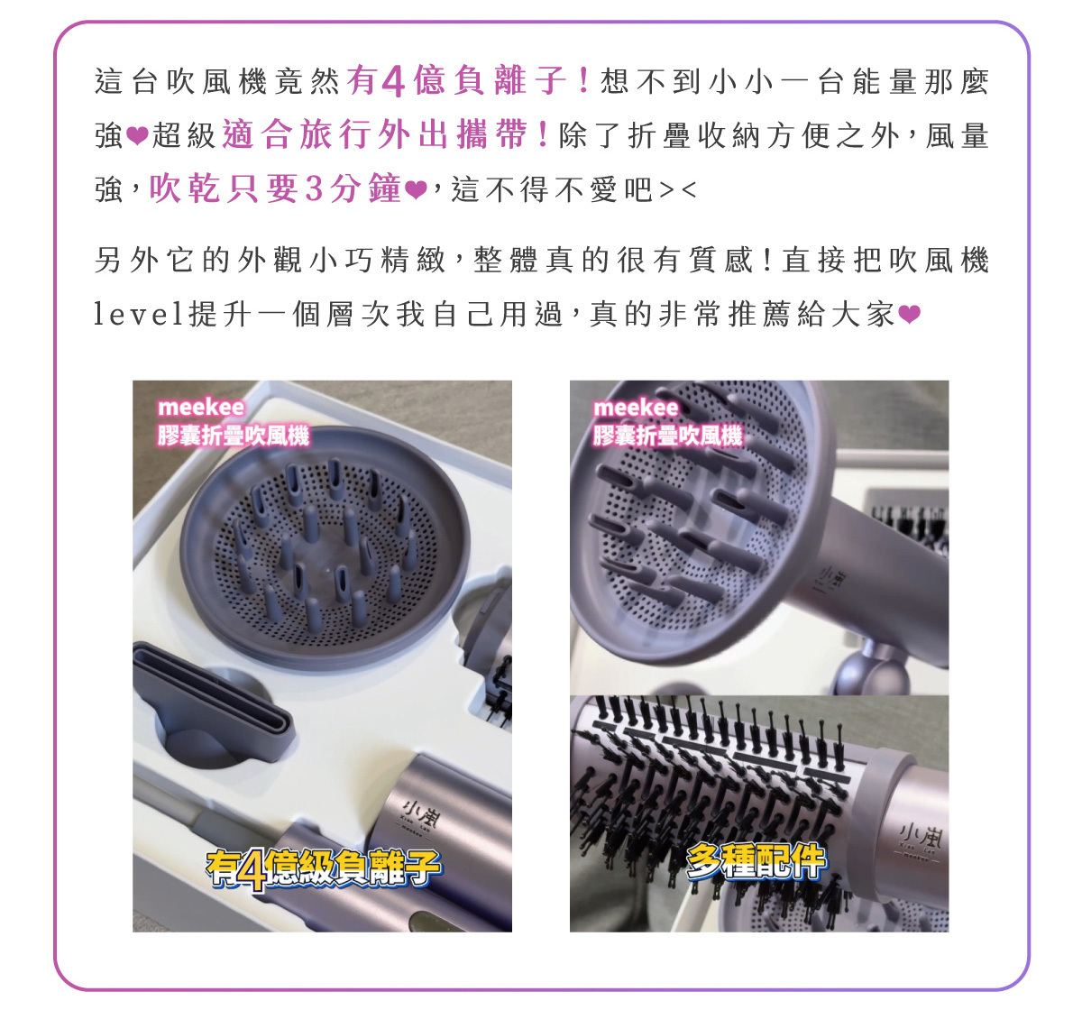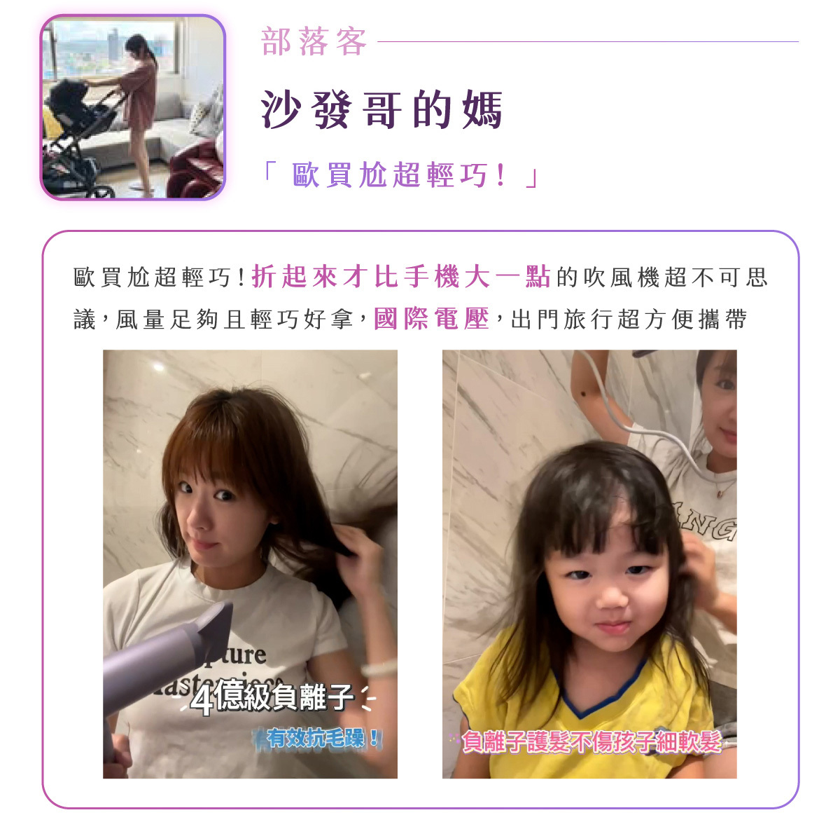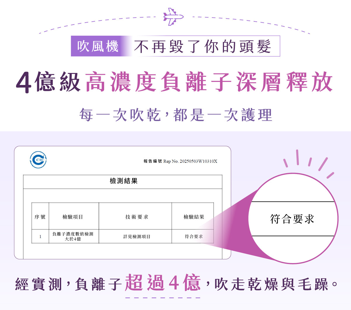 負離子: 4億級高濃度負離子,深層養護、抗靜電、鎖水光澤