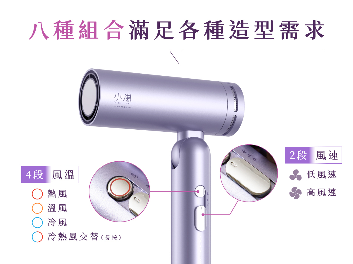 模式設定: 8種模式 (4段風速 X 2段溫度)