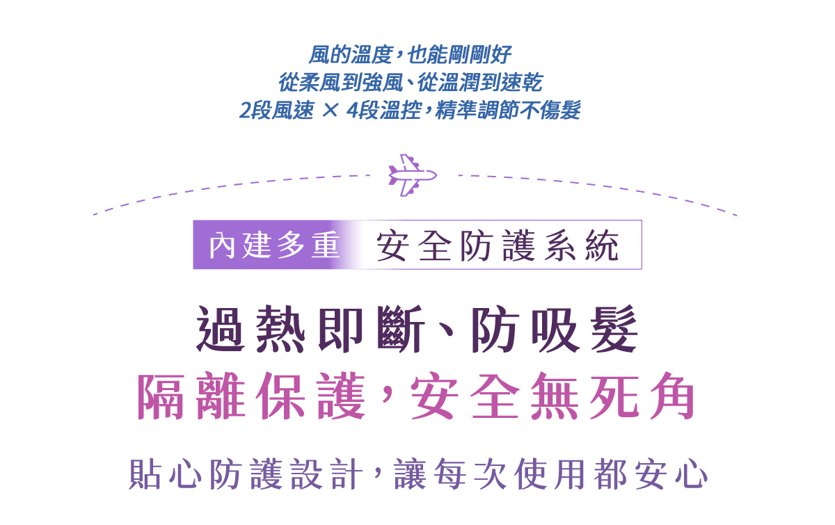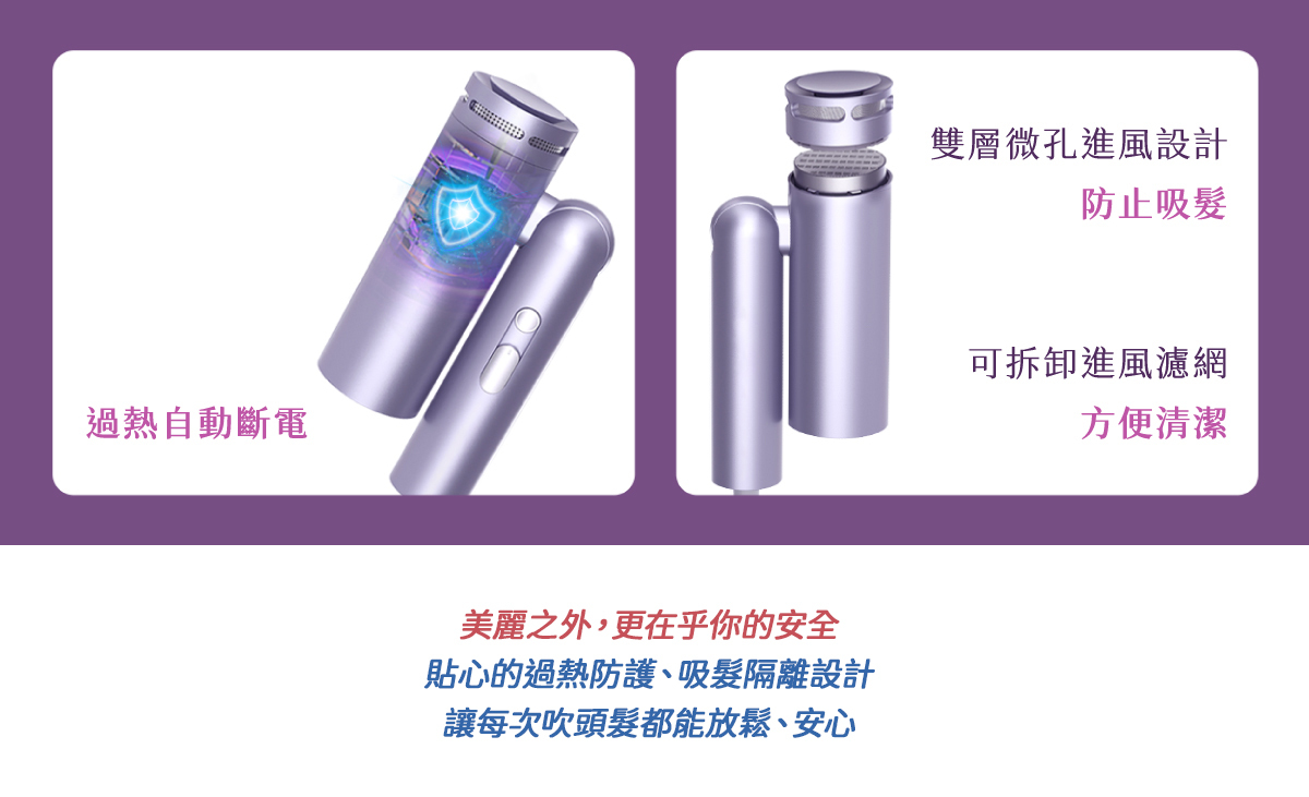安全設計: 智能控溫、防過熱自動斷電、防護網隔離灰塵毛髮