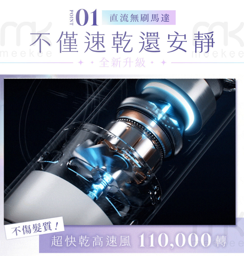 搭載11萬轉馬達+雙出風口,高速速乾不卡卡,還有2億負離子撫平毛躁、吹出超順髮質✨