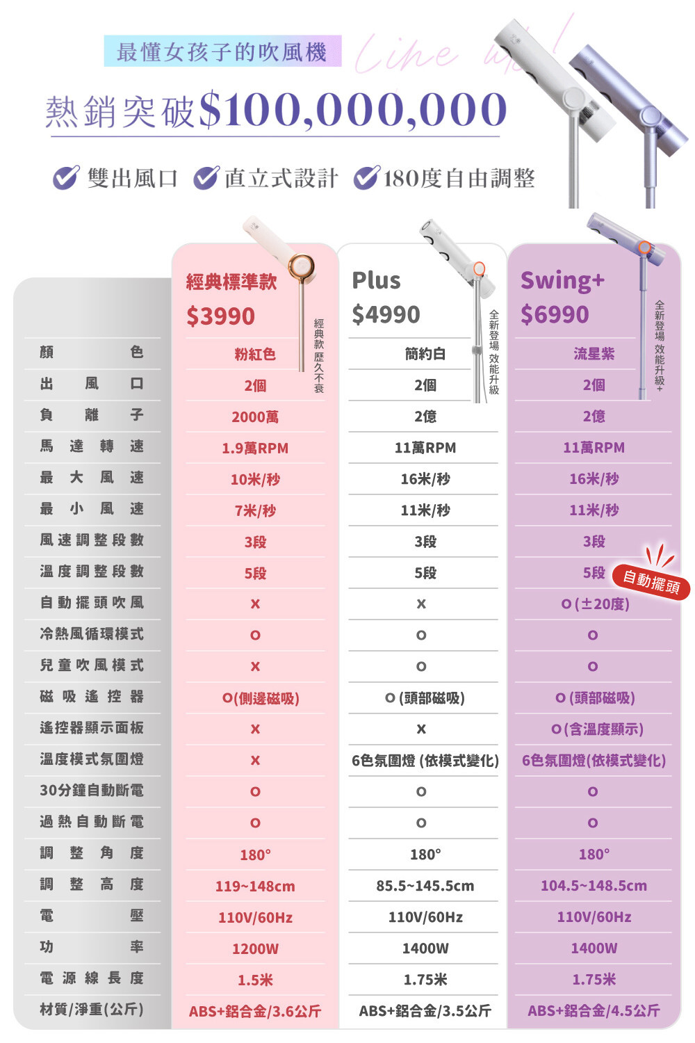 風更強、更靜音、更護髮,吹髮不再手痠,直立設計高度角度自由調,徹底解放雙手🙌