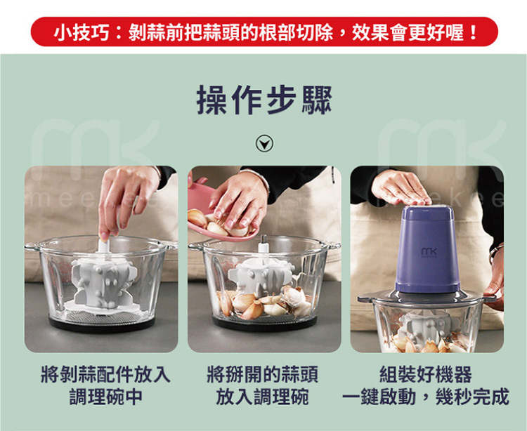 料理新手也能輕鬆變大廚!👩‍🍳✨meekee 3合1多功能食物調理機,剝蒜、絞肉、研磨、打發通通搞定,日常備料超省力~