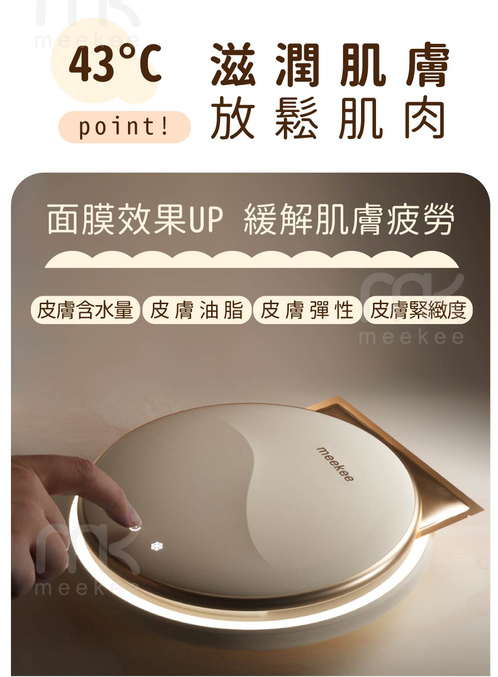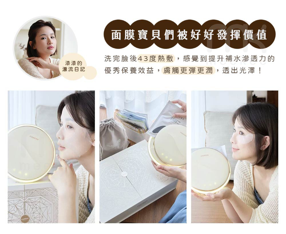 每天敷面膜,只靠貼上還不夠!💆♀️✨ meekee繆斯女神冷熱溫調面膜儀,幫你把保養力升級~冷熱交替導入,熱敷幫助吸收,冷敷鎮定舒緩,讓每片面膜發揮最大效果!🌸 使用簡單,一鍵啟動就像做SPA,還附磁吸導入環+立架設計,方便又優雅~搭配任何片狀面膜都OK,敷出更滑嫩透亮的女神肌💖