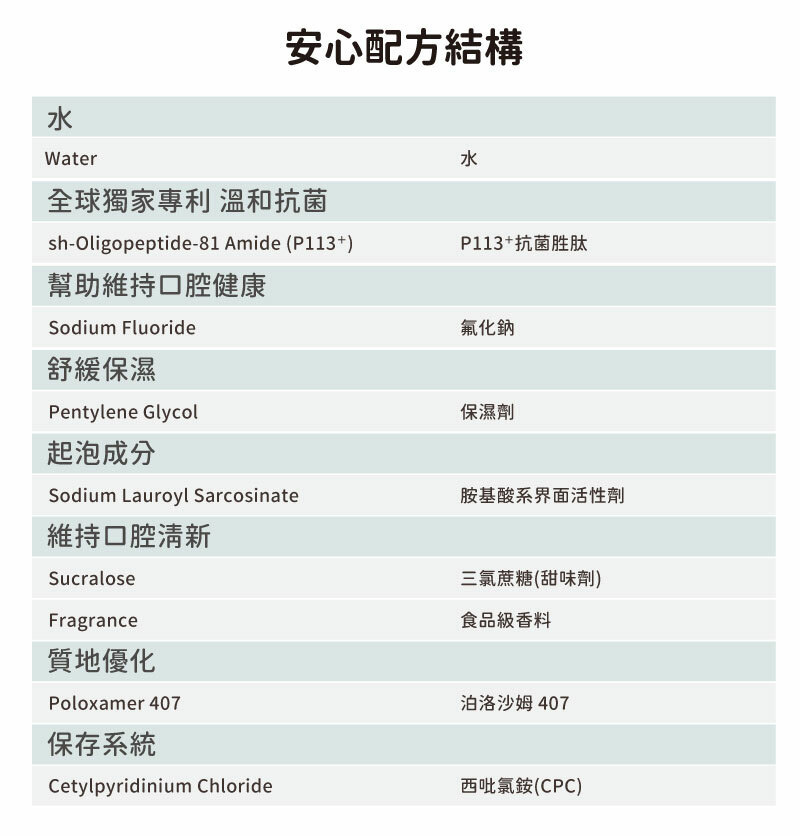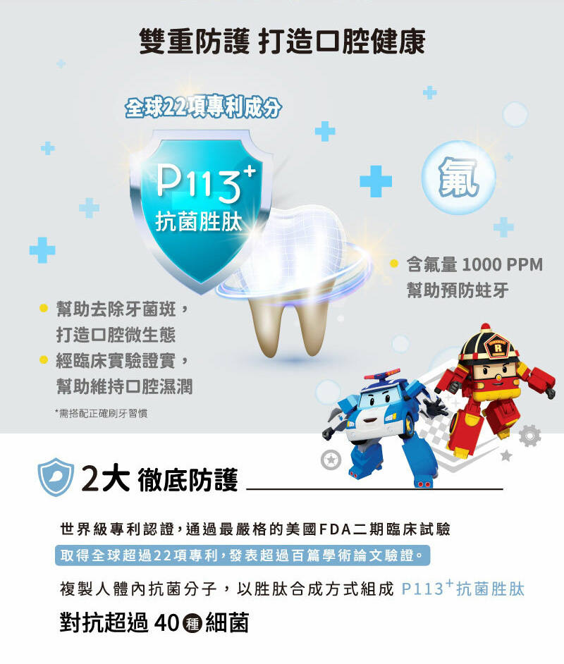 ●全球獨家專利P113+抗菌胜肽成分