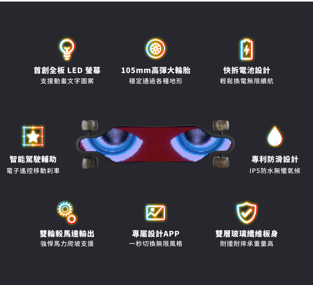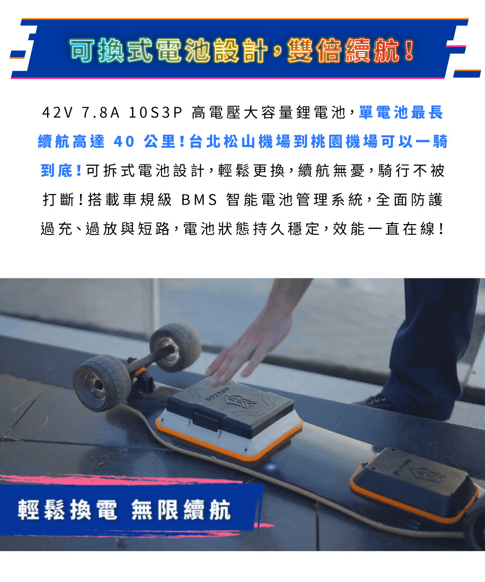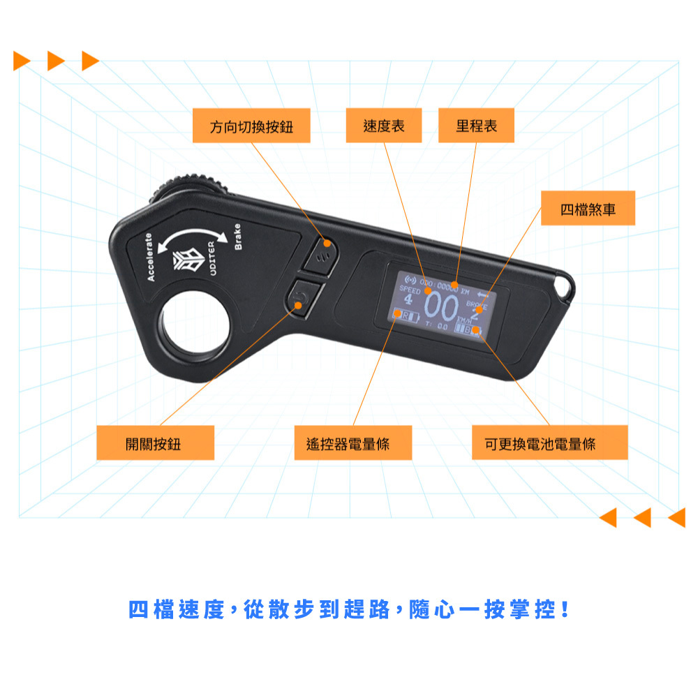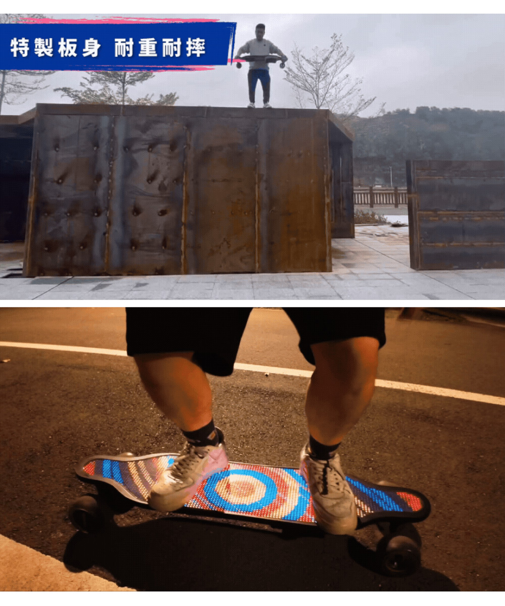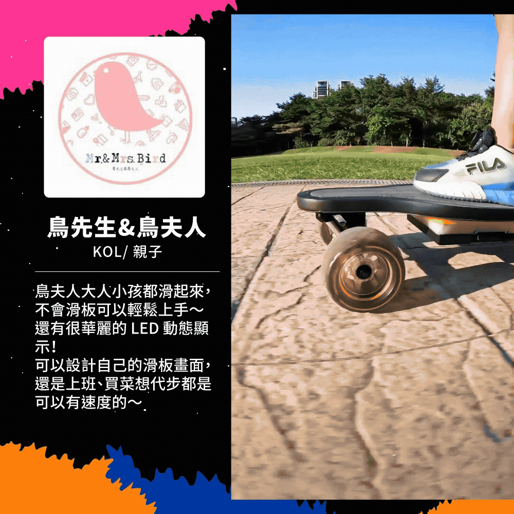 新手老手皆能騎!來自美國的革命性高性能電動滑板!史上首創跑字/動畫顯示!雙輪轂馬達 x 超大輪組,總輸出1200W的強悍馬力! 智能前後遙控煞車,四段加速有感不暴衝!