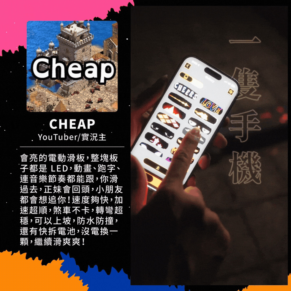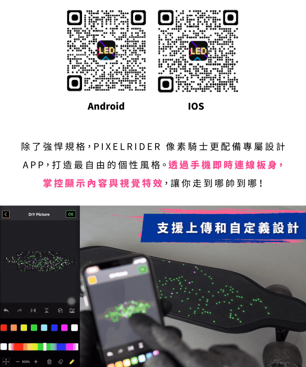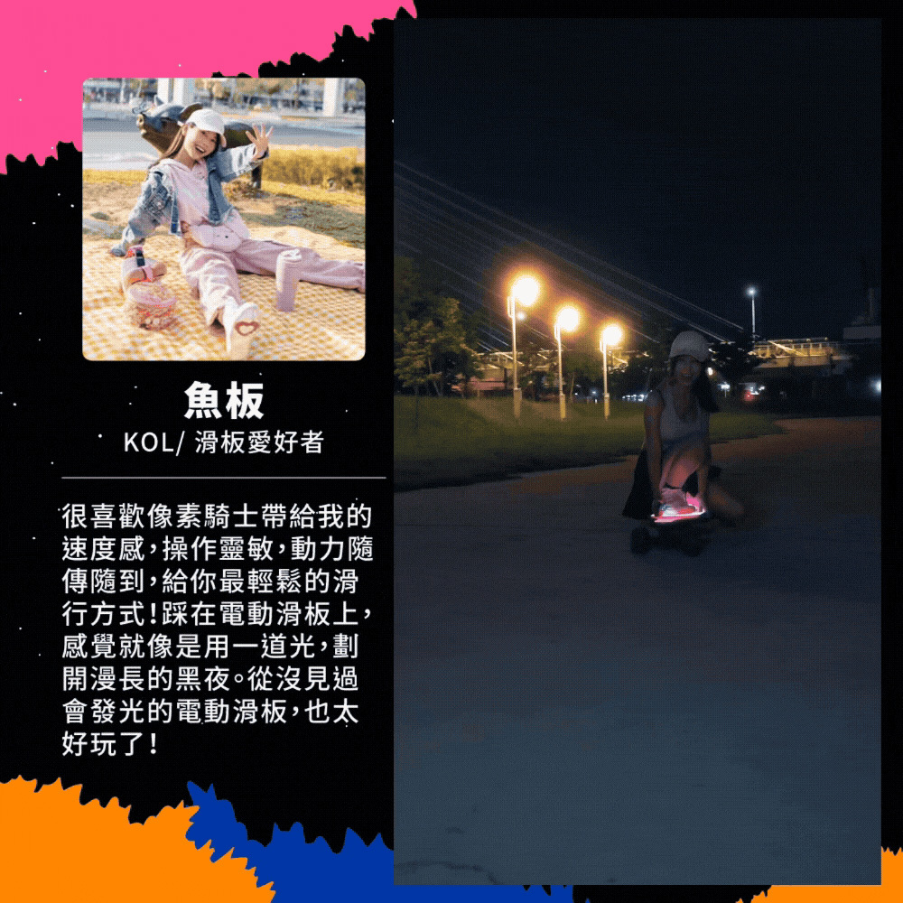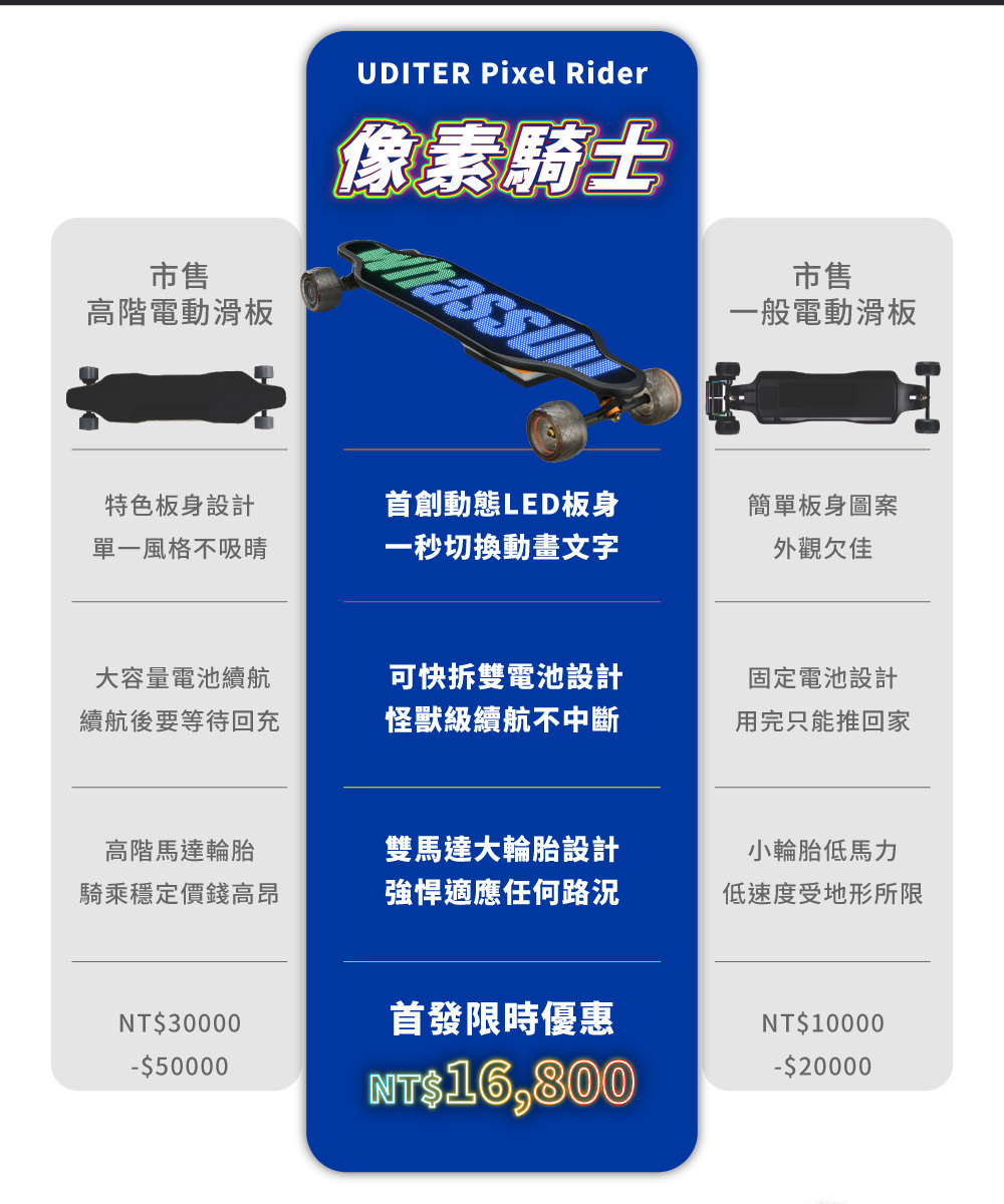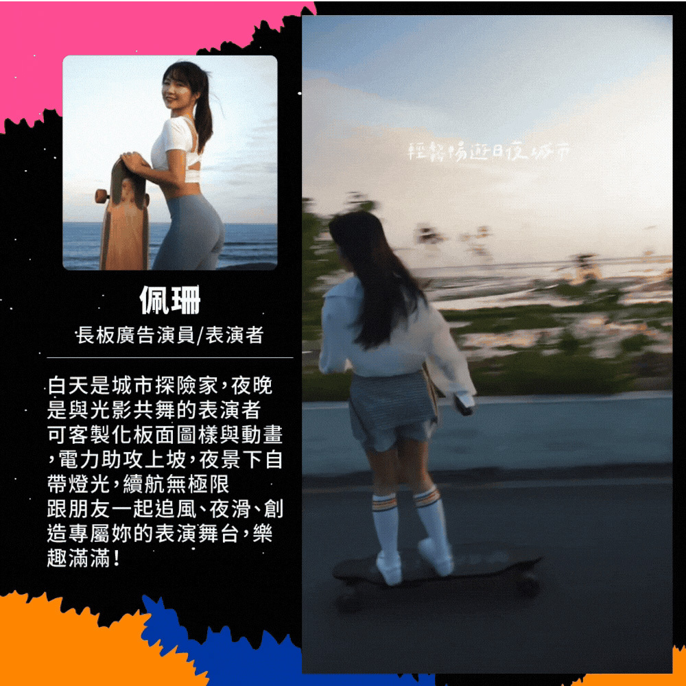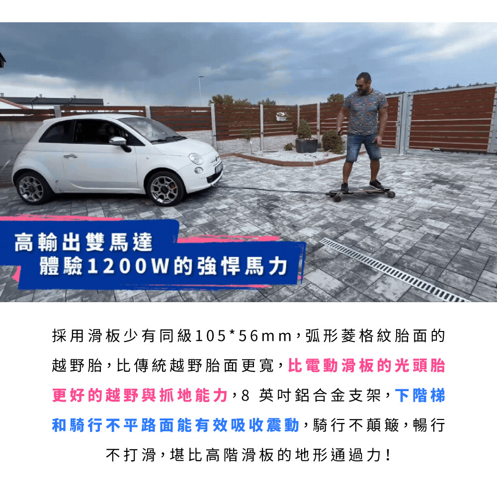 新手老手皆能騎!來自美國的革命性高性能電動滑板!史上首創跑字/動畫顯示!雙輪轂馬達 x 超大輪組,總輸出1200W的強悍馬力! 智能前後遙控煞車,四段加速有感不暴衝!