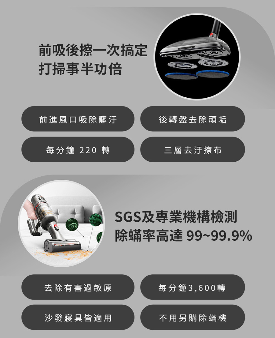 ●吸塵、擦地、除蟎、車用,一次滿足!