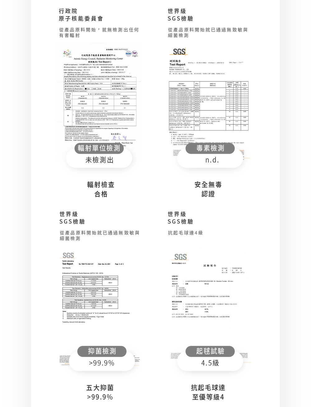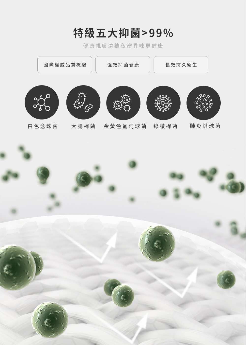 ●嬰兒級抑菌纖維,5大抑菌>99%,0螢光劑化學物